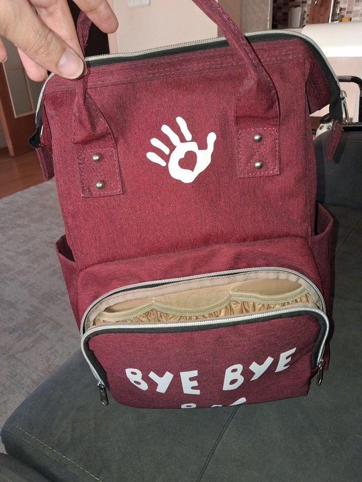 Bordo renkli, baskılı detaylara sahip bebek çantası. 'BYE BYE' yazılı ön cepli, taşıma saplı ve çok bölmeli yapıya sahiptir.Civil'den alındı çok kullanılmadı