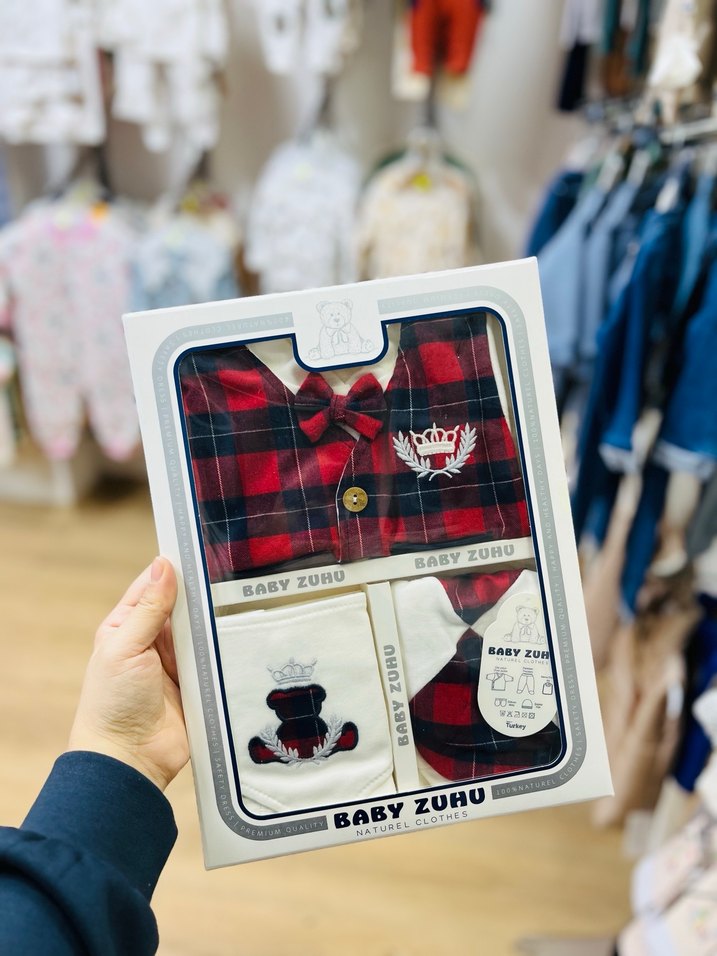 Bordo Baskılı Bebek Erkek Takımı 5 li set