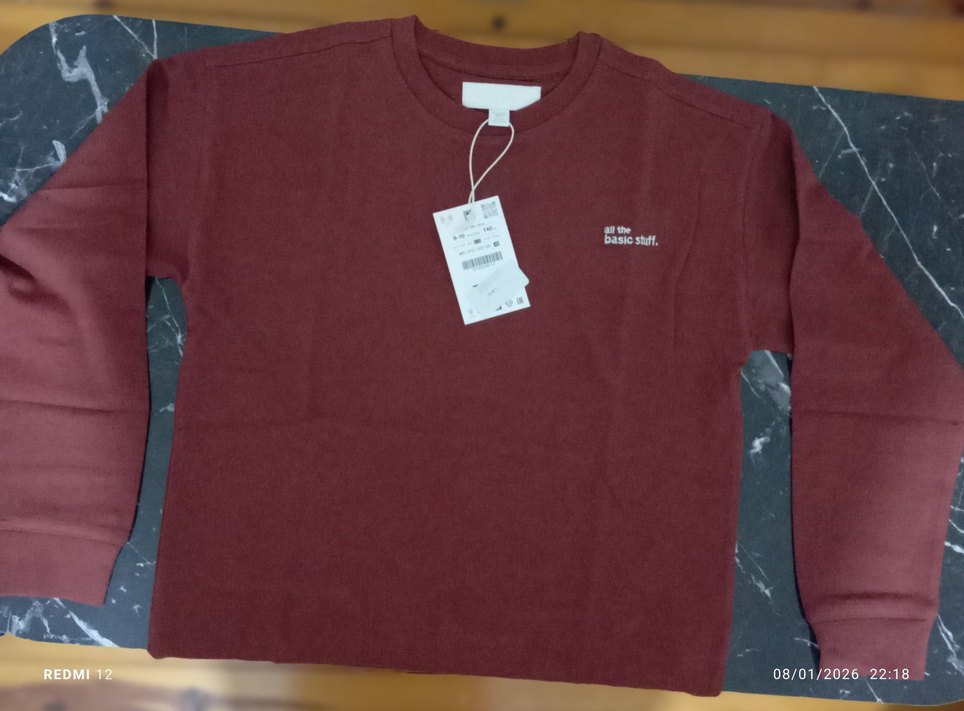 Bordo renk, yuvarlak yaka ve uzun kollu erkek tişörtü. Göğüs kısmında baskı detayı bulunur, rahat kesimli ve yumuşak, sıcak tutan kumaştan üretilmiştir.