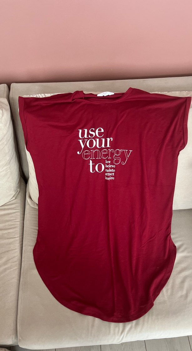 Bordo renkli, baskılı, kısa kollu, yuvarlak yakalı, bol kesim hamile tişörtü. Yumuşak sentetik kumaştan, rahat ve şık bir günlük kullanıma uygun.