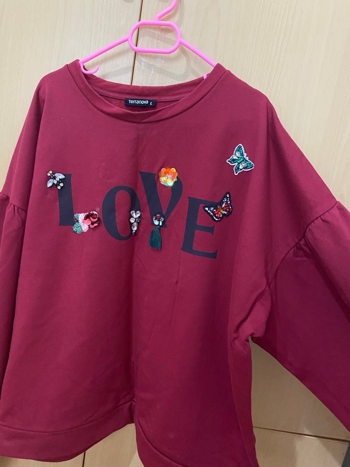 Bordo Baskılı Uzun Kollu Sweat