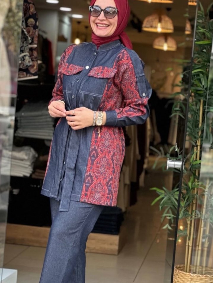 Bordo Batik Desenli Uzun Kot takım