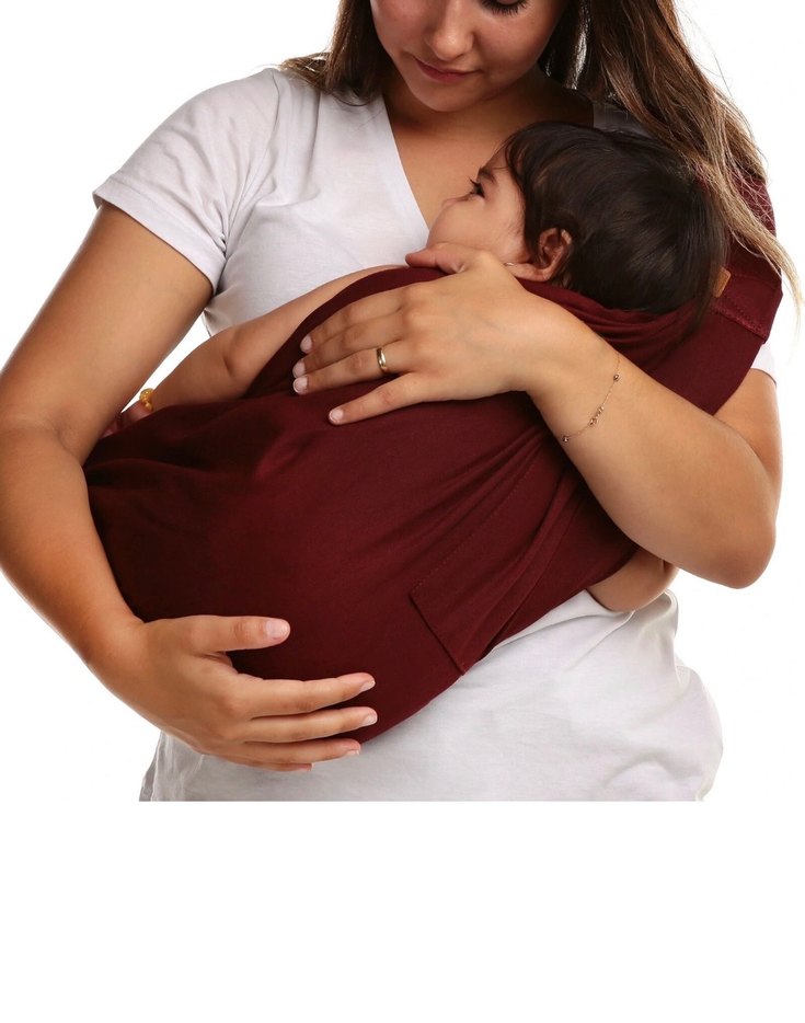 Bordo renkteki bu bebek kanguru sling, bebeğinizi konforlu ve güvenli taşımanızı sağlar. Elleriniz serbest kalır.