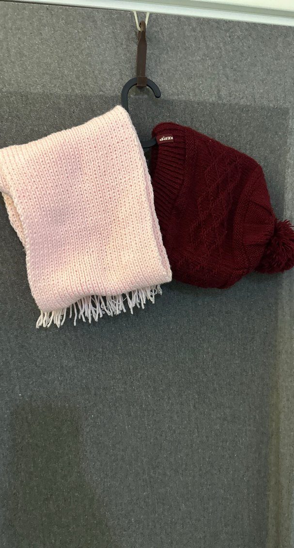 Bordo Bere ve Pembe Örgü Atkı Seti