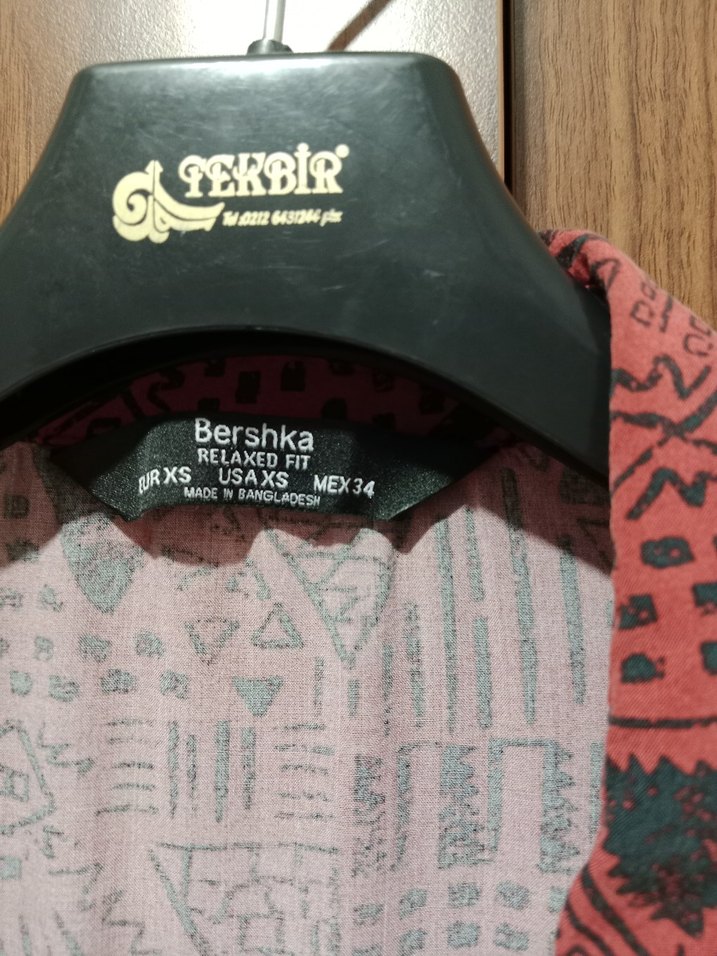 Bordo renkli Bershka erkek badge, rahat kesim ve koyu grunge punk tarzıyla bohem ve retro unsurlar içerir. USAXS ve MEX34 beden etiketlidir. ✨gomlek