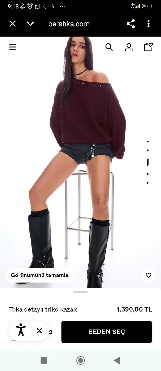 Bordo renkli,Bershka bedenleri mevcuttur sitesinde 1.500 tl..