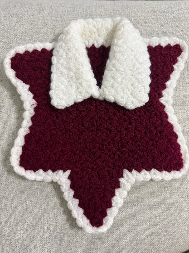 Bordo zemin üzerine beyaz nakışlı kenar ve yakaya sahip, renkli yıldız şeklinde lif Boyut: 23x28