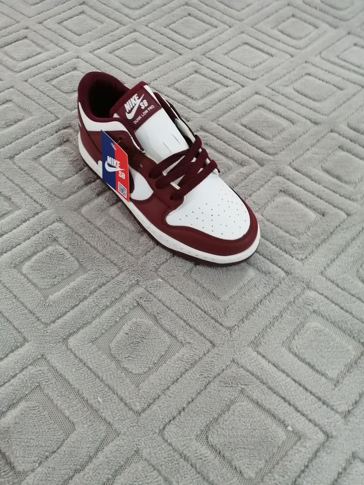 Bordo ve beyaz renklerde, blok topuklu ve cırt cırtlı Nike spor ayakkabısıdır. Kauçuk tabanı dayanıklılık ve rahatlık sağlar.