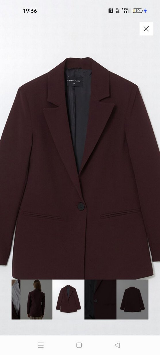Bordo renkli kadın ceket, düğmeli ve kesik yaka detayına sahiptir. Normal kesim, uzun kollu ve midi boydur, ofis kullanımı için uygundur. Desensiz, klasik ve trend bir tarza sahiptir. LCW classic koleksiyonu. Sifir etiketli