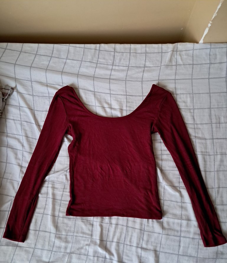 uzun kollu kayıkçı yaka bordo bluz kumaşı esnek vücuda oturuyor 2. fotoğraf kıyafetin sırt kısmıdır