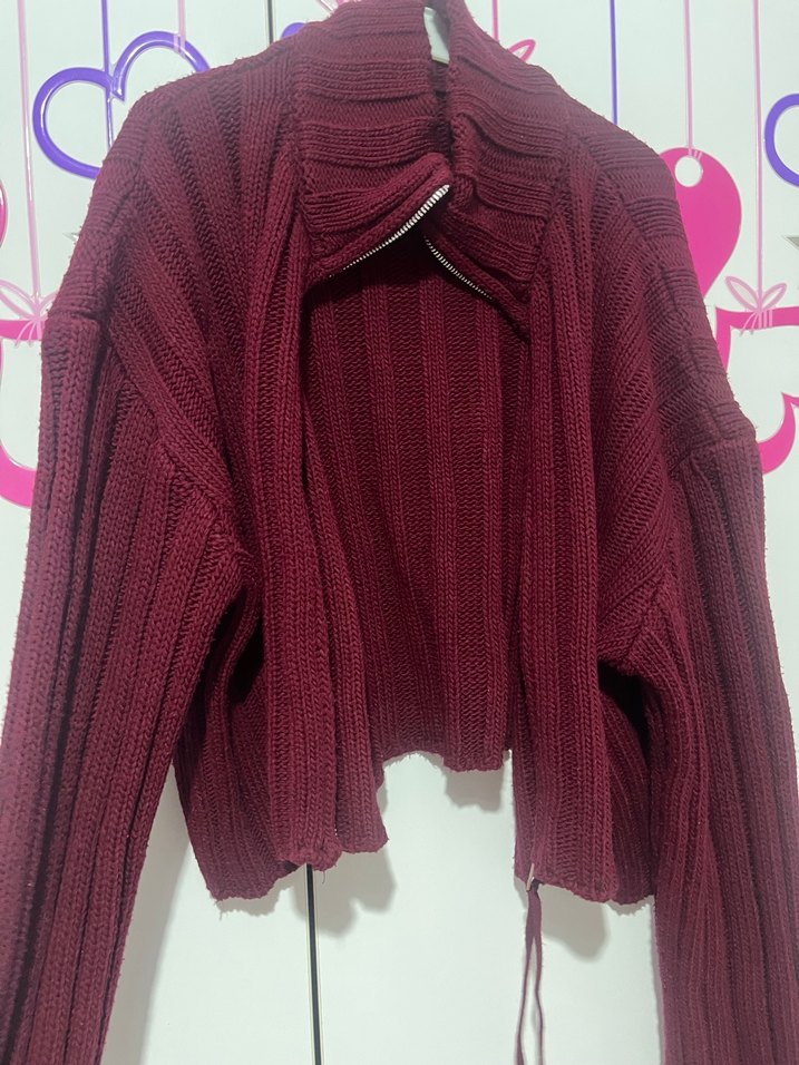 Bordo renk, boğazlı Hırka 2 kere giydim hic bir sıkıntısı yok.