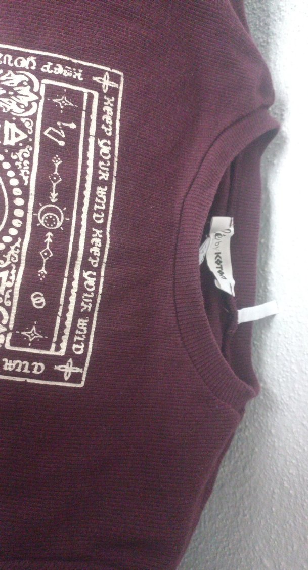 Bordo renkli, baskılı bohem tişört, yuvarlak yaka ve kısa kollu. Rahat kesim ve normal boyda, tekstil kumaştan yapılmıştır. Günlük kullanıma uygundur.
