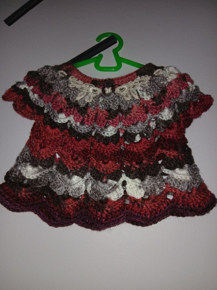 Bordo renkli, desenli bohem tarzda kız çocuk triko. Yuvarlak yaka ve salaş kesimle rahat bir kullanım sağlar. Kolsuz tasarım.