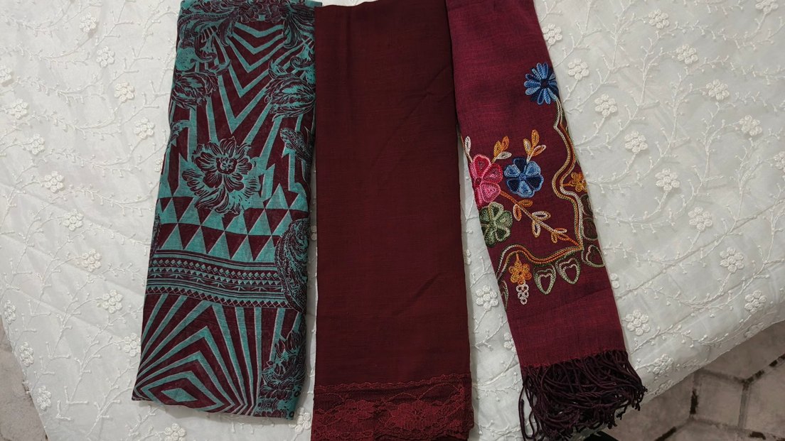 Bordo renkte, drapeli ve çiçek işlemeli kadın şalı. Yumuşak dokulu kumaştan, bohem tarzı için uygun. fiyat için sorunuz temsilidir marka temsilidir