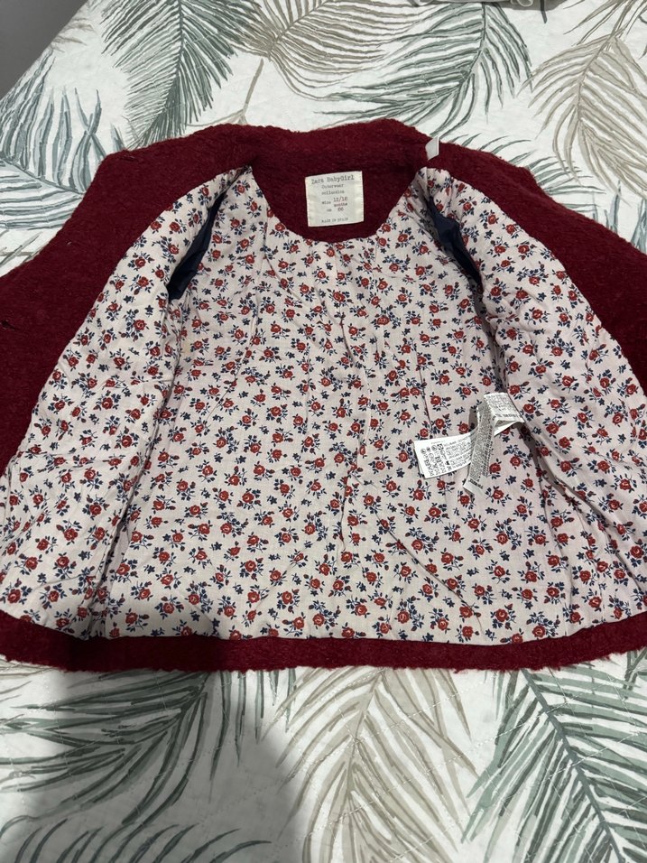 Bordo renkli kız çocuk yeleği, düğmeli, uzun kollu ve yuvarlak yakalıdır. Bohem tarzını yansıtan çiçek desenli iç astarı ve bol kesimi vardır.