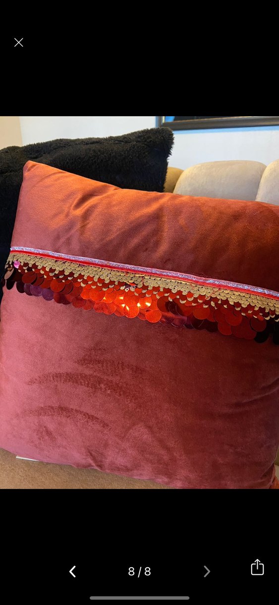 Bordo bohem tarzda, nakışlı ve parlak payet detaylı yastık, dekorasyona sıcaklık ve doku katar.