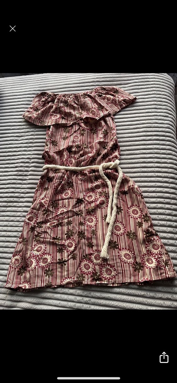Bordo renkli, bol kesim bohem elbise, pliseli detaylı ve kayık yaka. batik desenli, günlük kullanım için uygun. Hiç giyilmedi,defosu yoktur.