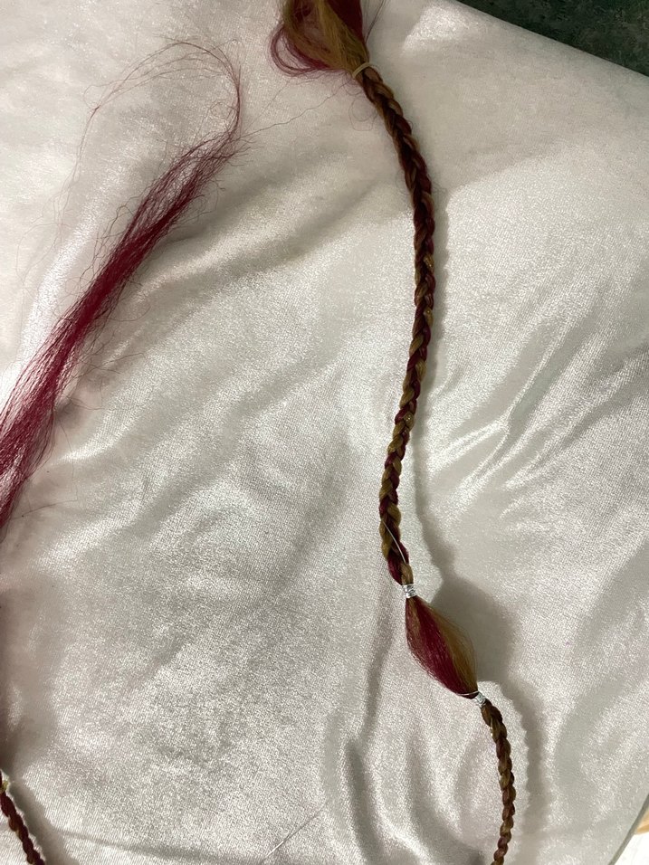 Bordo renkli, ipeksi dokulu ve püsküllü detaylı bohem tarzda saç aksesuarı. Saç süslemede yumuşak ve şık bir dokunuş sağlar.