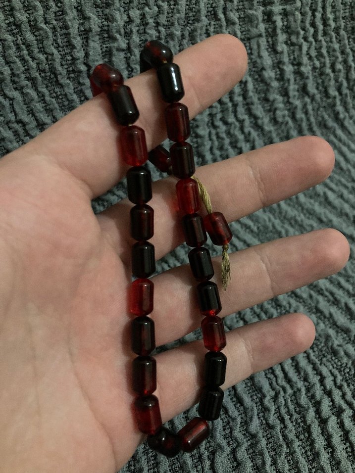 Bordo renkli, silindirik boncuklardan oluşan bohem tarz erkek tesbih. Manevi kullanıma veya aksesuar olarak uygundur.