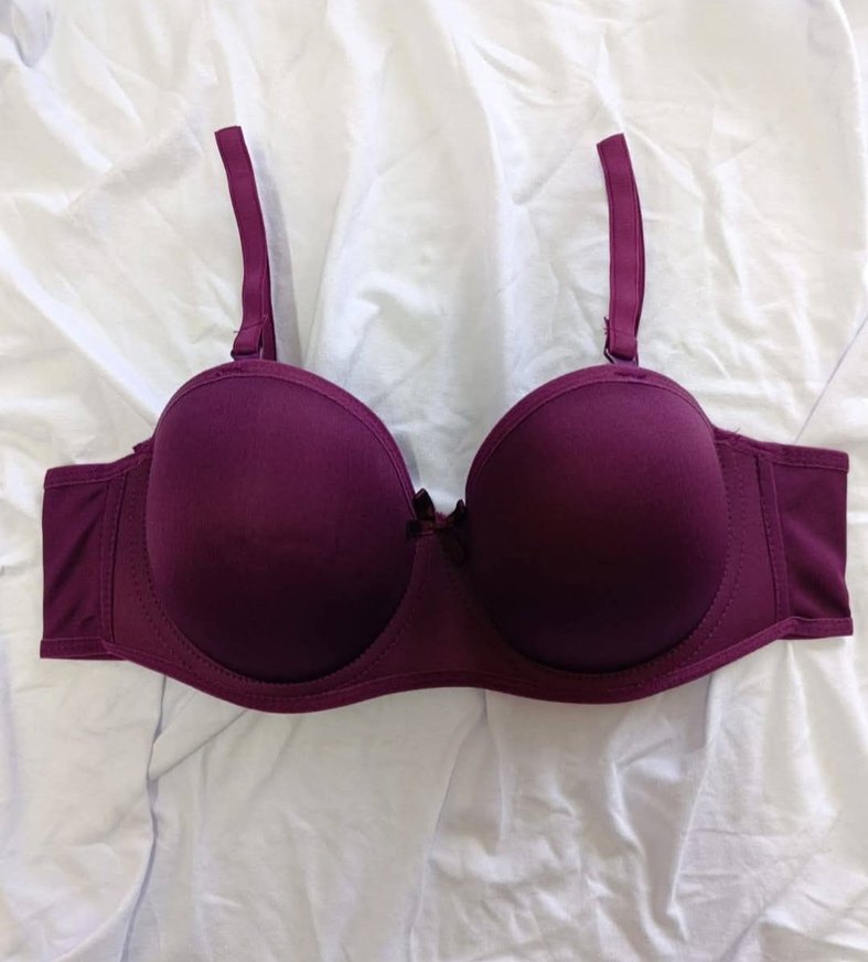 Bordo renkte, bohem ve minimalist tarzda, desen içermeyen, ayarlanabilir askılı sütyen.