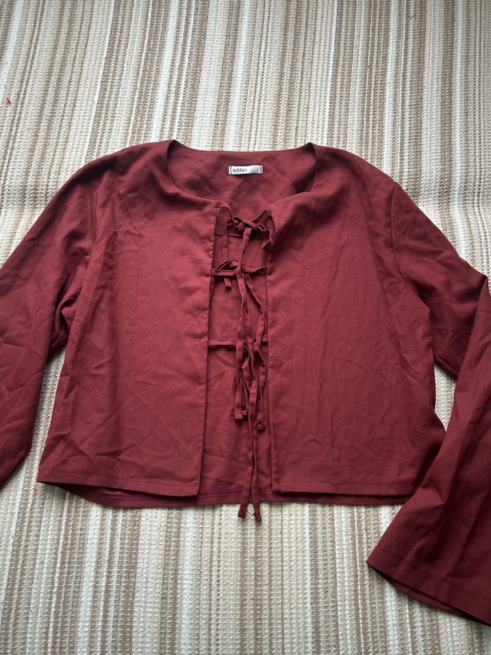 Bordo renk, keten kumaştan yapılmış .Bohem tarz, uzun kollu ve düğmeli detaylara sahip, salaş kesim. Düz ve koyu renklidir.