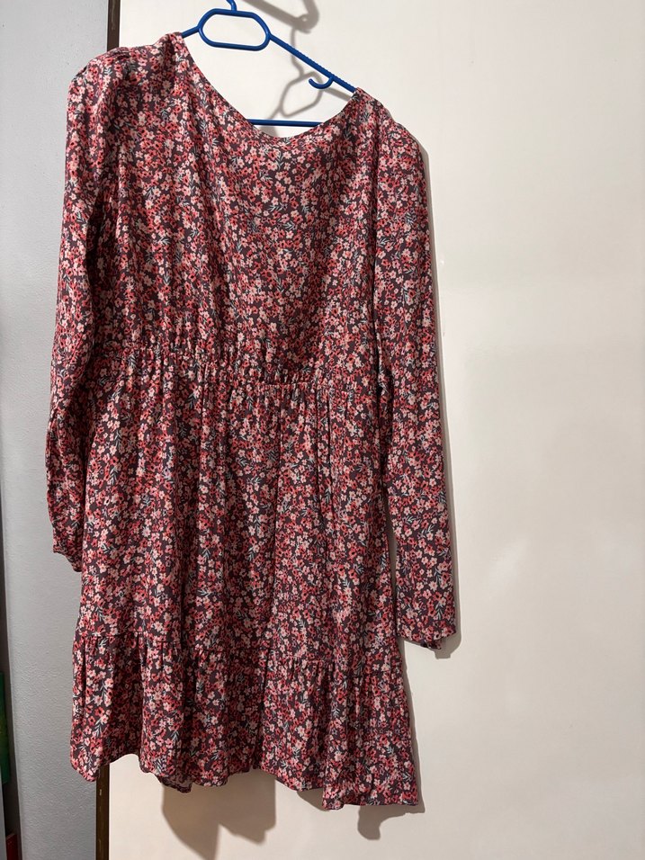 Bordo renkte, bol kesim, uzun kollu ve fırfır detaylı bohem elbise. V yaka ve midi boyda, sentetik kumaştan, hafif batik desenlidir. Günlük kullanım için uygundur.