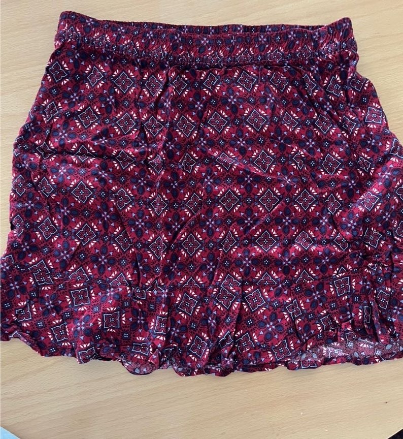 Bordo Bohem Volanlı Mini Etek