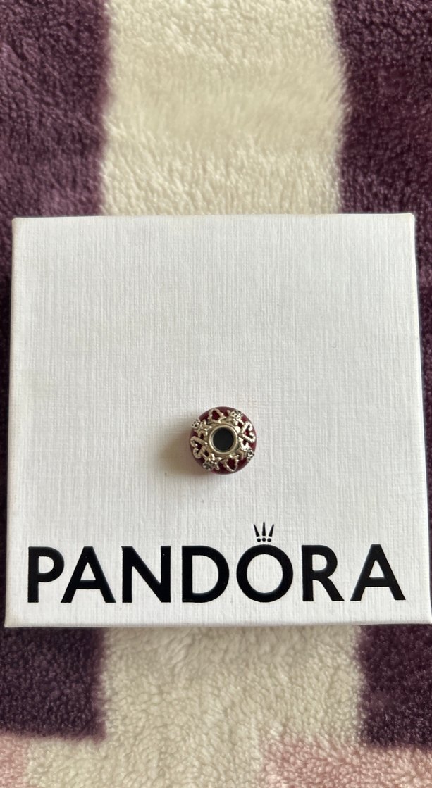 Bu koyu bordo Pandora charm, boncuklu ve baskılı detaylara sahip olup bohem ve retro tarzını yansıtıyor. Romantik akşamlar için uygun.
