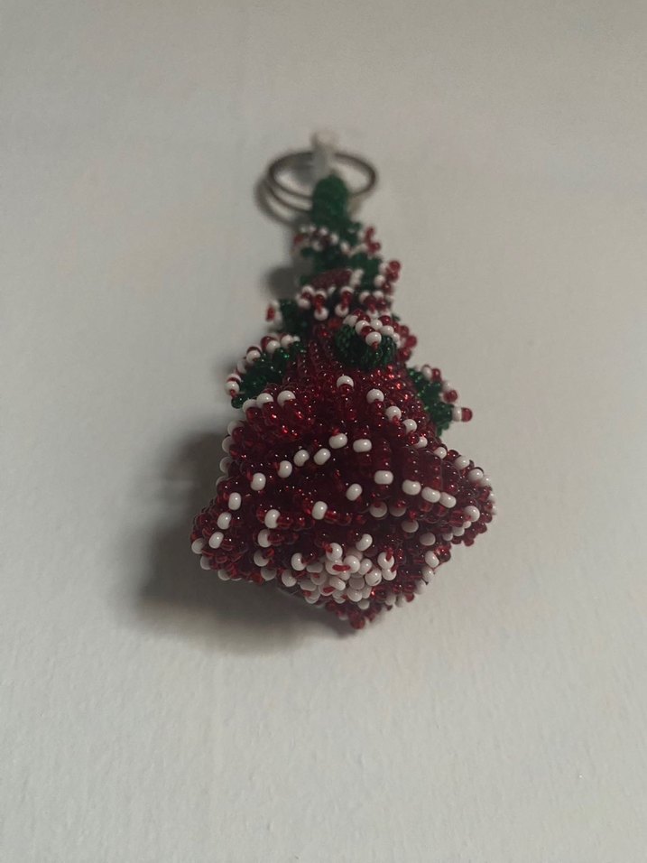 Bordo ve renkli boncuklardan oluşan bohem tarzda minimal ve hippie görünümlü anahtarlık.