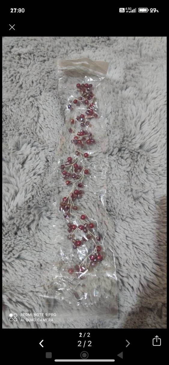Sentetik kumaştan bordo boncuklu, bohem tarzda, gri tonlarda rahat bir saç aksesuarı. Retro ve hippie stiller için uygundur.