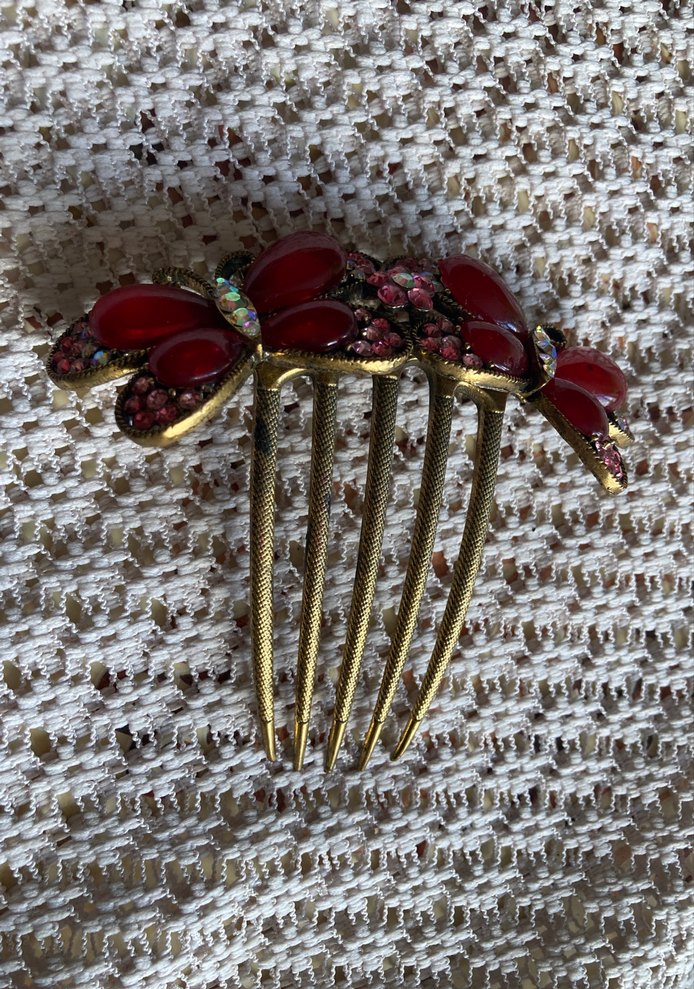 Bordo boncuklarla süslenmiş, vintage tarzda, örgü görünümlü konvansiyonel saç tokasıdır. Dört dişi vardır ve saç tutmak için uygundur.
