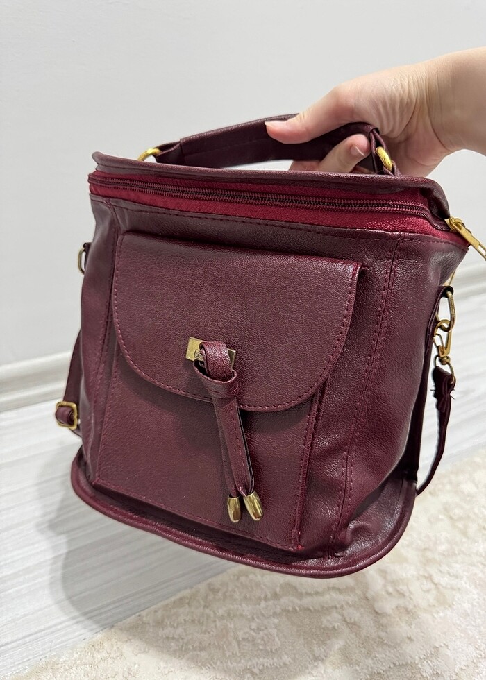 Üstten fermuarlı , içi tek gözlü. Dışında cep gözü var. Hiç kullanılmadı. Boyutu anlaşılsın diye kâğıt para ile fotoğraf yükledim.