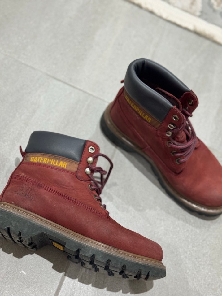 Bordo Caterpillar kadın botları, dayanıklı kauçuk malzemeden ve blok topuklu. Sokak stiline uygun, trend ve rahat günlük kullanım için şık tasarım. Sorunu resimde gösterilmiştir
