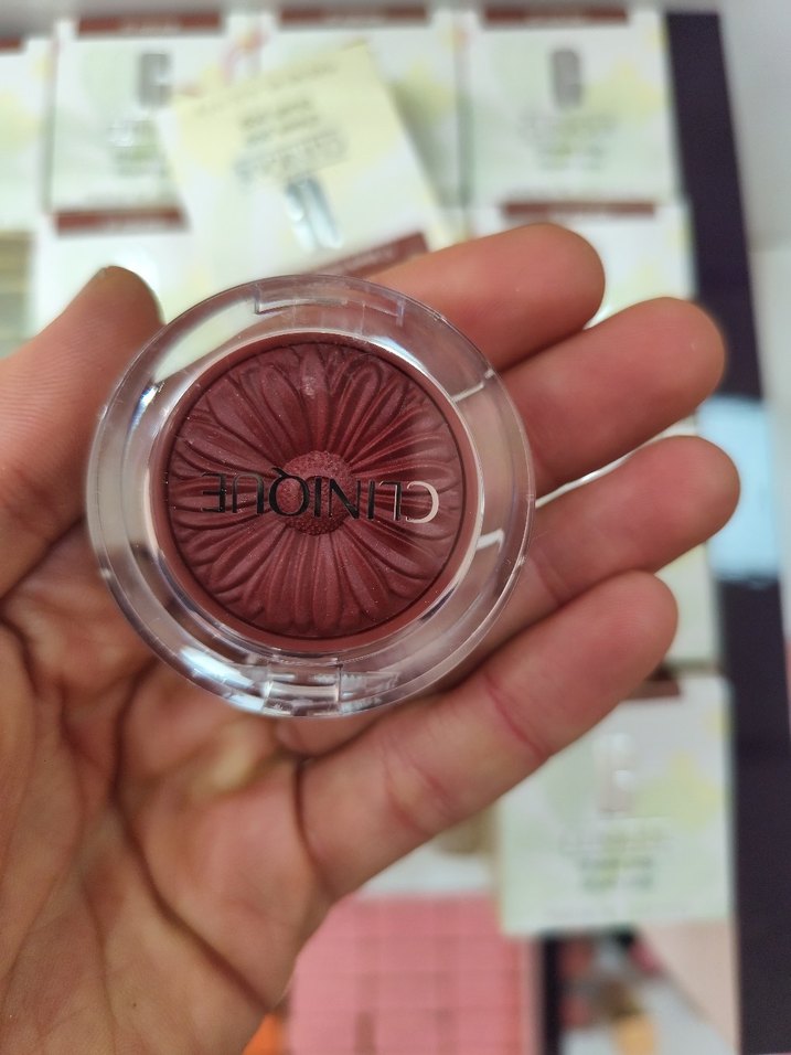 Şeffaf kutuda çiçek kabartmalı bordo allık. Yanaklara doğal renk ve doku katar.