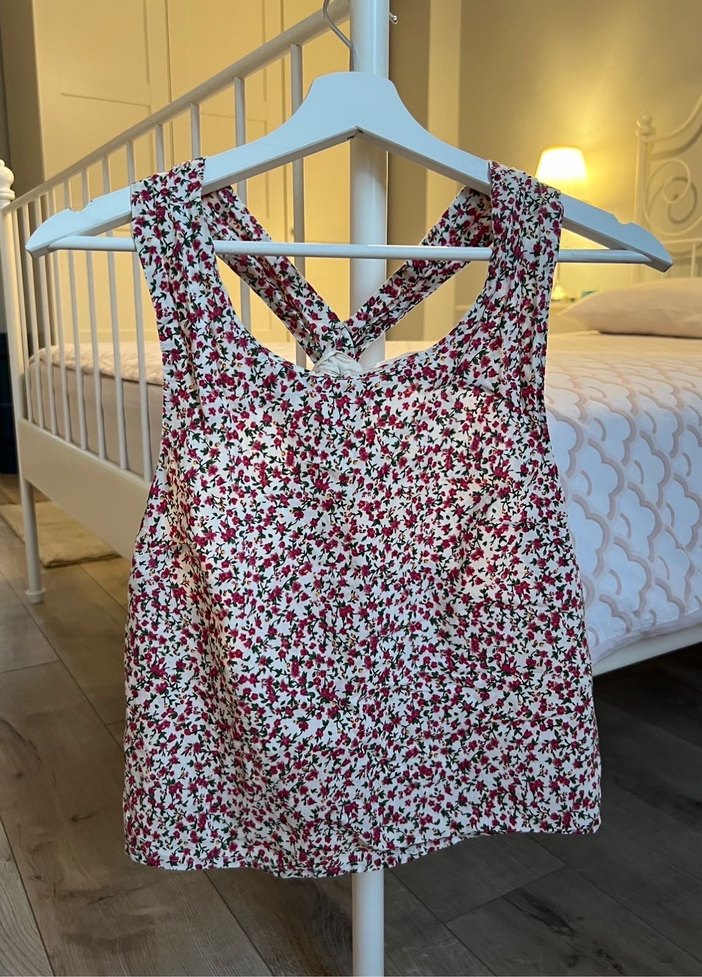 Askılı, salaş kesim, midi boyda, bordo çiçek desenli, drapeli, vintage bohem tarzda günlük kullanıma uygun bluz.