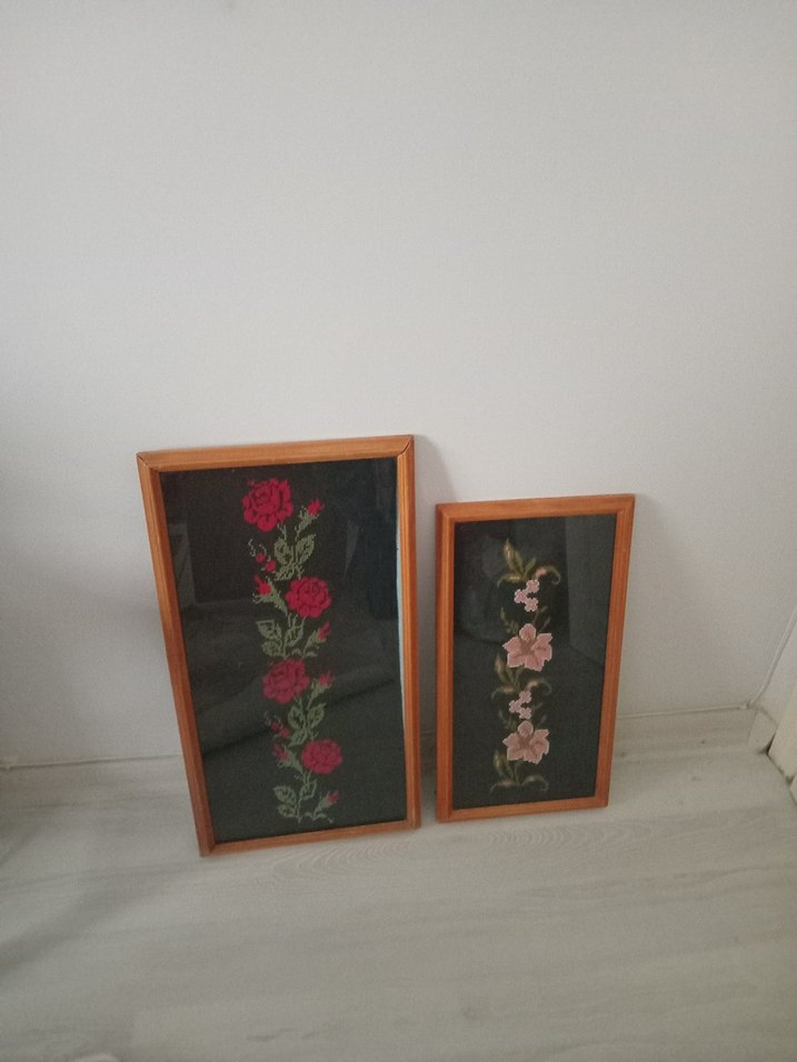 Bordo Çiçek Desenli İki Ahşap antıka Çerçeveli Tablo