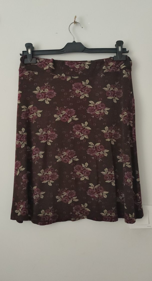 Bordo renkli, çiçek desenli midi etek, bol kesim ve drapeli yapısıyla yumuşak sentetik kumaştan bohem tarzda tasarlanmıştır.