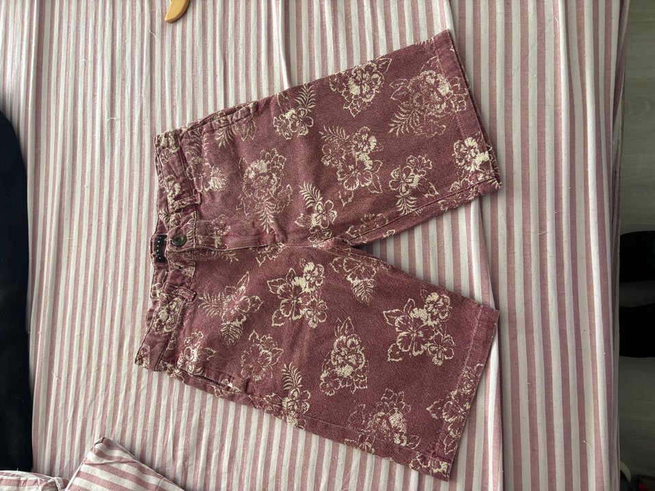 Bordo tonlarında, çiçek desenli ve dantel detaylı, bol kesim midi kadın kumaş pantolon. Günlük kullanıma uygundur.
