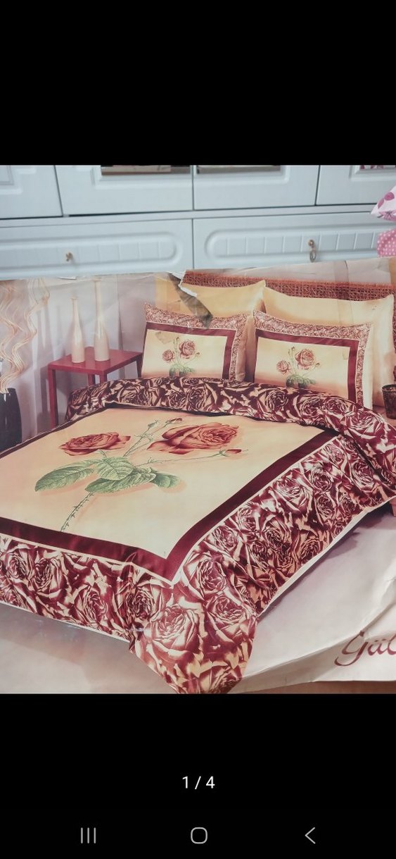 kahvrengi ve gül desenli renkli baskılı nevresim takımı, yatak odanıza çiçeksi bir dokunuş katıyor 1 kere kullnldı. kutusunu attım 2 düz yastık kılıfı 2 desenli nevresimi ve lastikli çarşafı bulunur