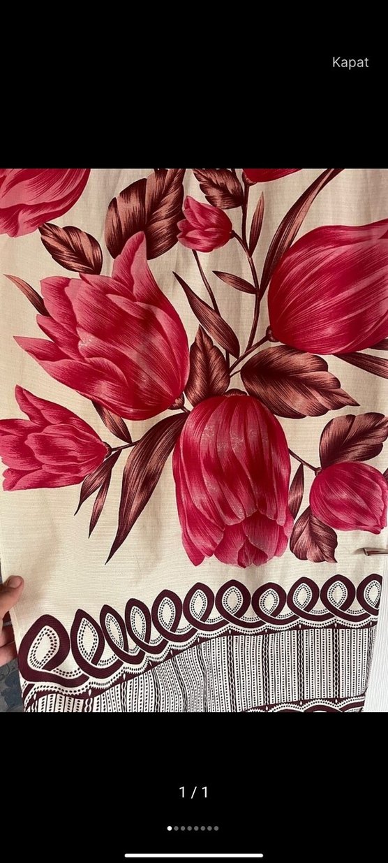 Koyu bordo çiçek desenine sahip geleneksel tarzda perde, mekana şıklık katıyor.