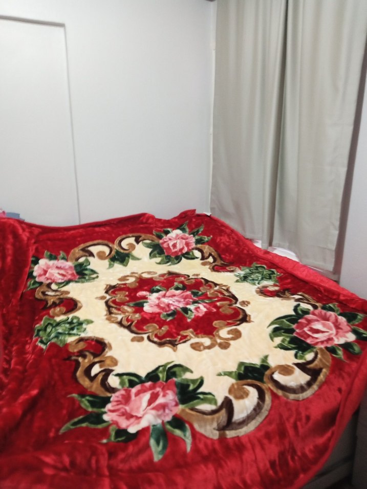 Bordo renkli, büyük pembe çiçekler ve yeşil yapraklardan oluşan renkli çiçek desenli battaniye, sıcaklık ve şıklık sağlar. çift taraflı, çift kişilik Battal boy ebatları soran için yazarım oldukça büyük ve sıcacık peluş bir tarafı diğer tarafı yün