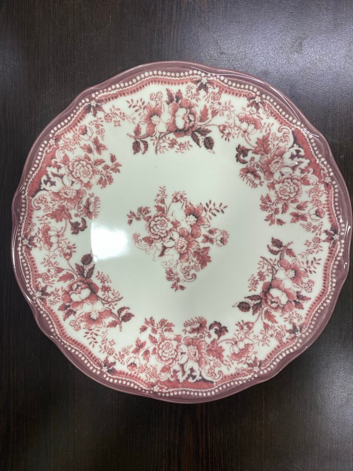 Bordo çiçek desenli, kıvrımlı kenarlı klasik ve şık tasarımlı tabak. ️