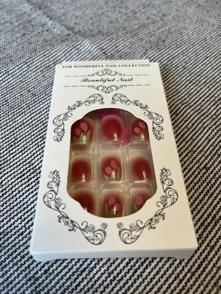 Bordo renkli, çiçek desenli tırnak süslemeleri, tırnaklarınıza zarif bir dokunuş katar. 24 adet tırnak 24 adet yapıştırıcı bir adet törpü