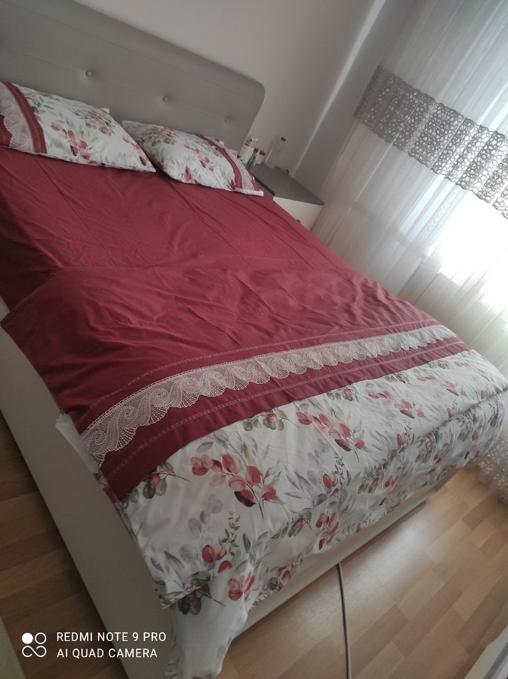 Bordo renkli, açık tonlu çiçek desenli ve dantel detaylı yatak örtüsü, yatak odasına sıcaklık katar. Çift kişilik nevresim takımıdir. Sipariş üzerine özel çalışılmıştır. Sipariş alınır