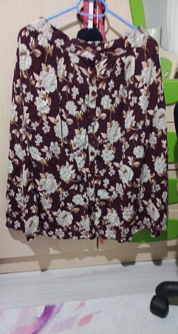 Bordo renkli, çiçek desenli hamile eteği, düğmeli ve bağcıklı detaylara sahiptir. Yumuşak sentetik kumaştan yapılmış, bol kesimdir. Günlük kullanım için uygundur.