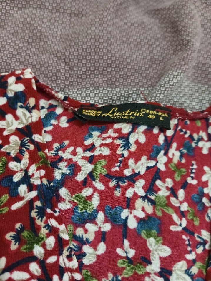 Bordo renkli bu bluz, V yakalı ve uzun kollu, bol kesime sahiptir. Çiçekli baskılı ve düğmeli detaylı, vintage bohem tarzını yansıtır. Sentetik kumaştan üretilmiş, günlük kullanıma uygundur.