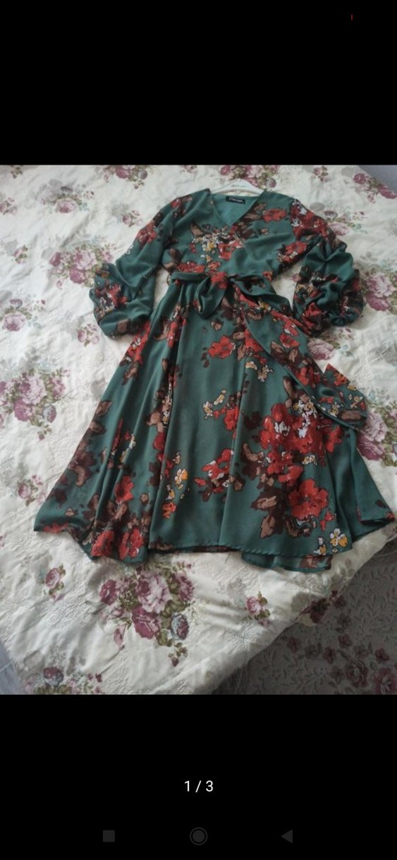Bordo çiçek desenli, uzun kollu, V yaka ve bol kesimli bohem elbisedir. Fırfır detaylarıyla düğünler için uygundur.