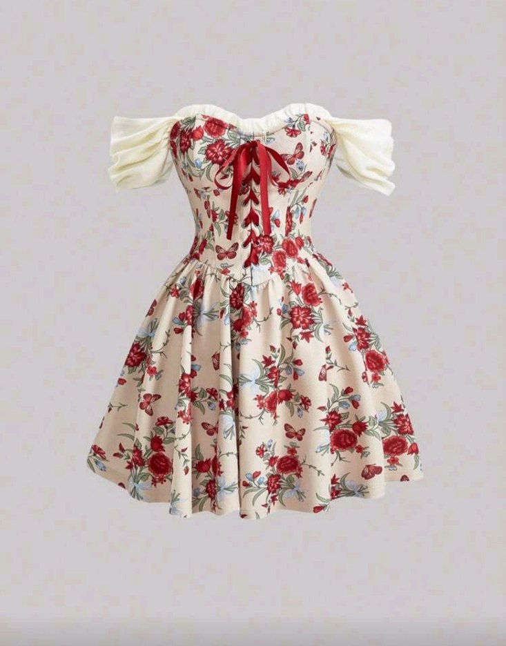 Bordo Çiçekli Vintage Midi Elbise