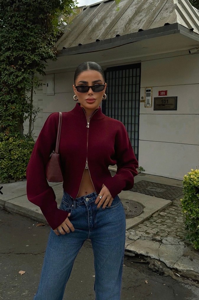 Bordo renk çift fermuarlı kadın triko hırka Marka muadildir Xs-s ve m-l bedenleri mevcuttur