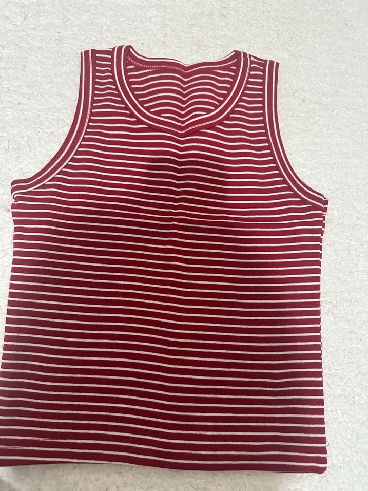 Bordo ve beyaz çizgili atlet, yumuşak dokusuyla rahat kullanım sağlar. Katmanlama için uygundur.